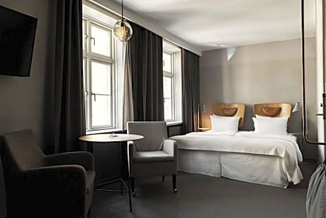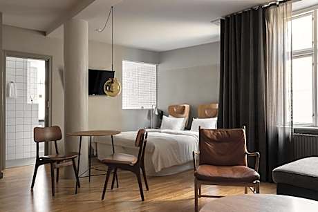 Featuring a breakfast buffet of organic food and ingredients, this modern boutique hotel is 984 feet from City Hall Square and Copenhagen’s pedestrian street, Strøget. It features free WiFi, a rooftop terrace and 2 restaurants. Complimentary wine can be enjoyed between 17:00 and 18:00 every day. Cock's and Cows serves upscale burgers made from homemade ingredients, while Restaurant Väkst offers Nordic-style dining in an urban garden setting. All rooms at Hotel SP34 have tea/coffee facilities and a large, flat-screen TV with WiFi connectivity. Designer wooden furnishings and quality humdakin products are also standard. Suites include a complimentary mini-bar with both soft drinks and alcoholic beverages (wine, beer, and spirits). Vintage clothing shops, trendy restaurants and a wide selection of cafés and bars are easily accessed. Tivoli Gardens is an 8-minute walk away.