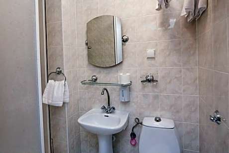 An elegant room with a classic interior design. It includes a TV and a private bathroom with free toiletries.