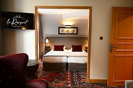 Between Saone River and St Philibert Abbey, The Hôtel Le Rempart, Tournus is a former 15th century guard house, now completely renovated hotel. It is located 5 minutes from the crossroads of the motorways. Rooms and suites are elegant, comfortable and fully equipped with air conditioning, satellite TV and private bathrooms. During your stay at Hotel Le Rempart, you can enjoy your meals at the Rempart brasserie, opened everyday from 12am to 1.30pm and from 7pm to 9.30pm. Enjoy a moment in our pub opened everyday from 11am to 12pm.
