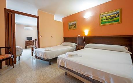 Spacious Single Room, equipped with a double bed of 1.35 and 2 bed of 90 with all its sheets and accessories. Sofa, flat TV, WIFI, full bathroom with gel, towels, toilet paper and shower. Large room with all the equipment to work in it and to have an optimal rest. This room has a living room with sofas apart from the bedroom and views.