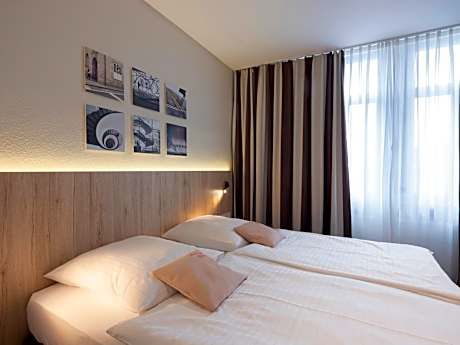 This room features a view of the exhibition rooms of the New Museum for Art and Design, as well as Klarissenplatz square. The room is equipped with an private bathroom with bathtub.
