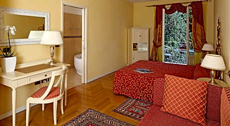 Set in a 19th-century building in Gardone Riviera, Villa Sofia Hotel is a 10-minute walk from Lake Garda. It features air-conditioned rooms, an outdoor pool in the garden, and a 24-hour reception. Art Nouveau-style rooms at the Villa Sofia come with a satellite TV, mini-bar and safe. The private bathroom is complete with a hairdryer and free toiletries. Some overlook the lake or garden. Wi-Fi in public areas is free. The city of Brescia is 25 mi away. Parking at the property is free.