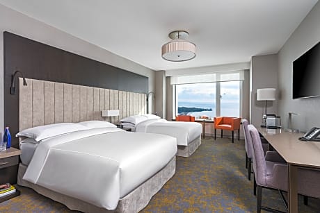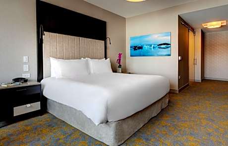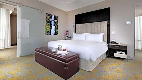 Hotel X Toronto, a Destination by Hyatt Hotel features waterfront and city skyline views. Located on the historic Exhibition grounds and 100% smoke free, Hotel X Toronto redefines the luxury hotel experience with exceptional rooftop hospitality, exquisite dining, flexible meeting spaces, extraordinary events and expansive tennis, fitness and wellness facilities. Amenities include exclusive theaters and a one-of-a-kind photographic art gallery. The Guerlain Spa, offers 10 unique treatment rooms, a beauty boutique with manicure and pedicure stations, and a post-treatment relaxation lounge overlooking the lake. Each elegantly designed guest room features free WiFi, free bottled water, a mini refrigerator and L'Occitane bath amenities. Hotel X Toronto's on-site restaurant, Roses Social is open for breakfast, lunch, and dinner. Our rooftop restaurant and bar Valerie is open for dinner. Within 0.9 mi from Hotel X Toronto at Exhibition Place, is the Enercare Center, Beanfield Center, Budweiser Stage, BMO Field, Ontario Place, Coca-Cola Coliseum, Queen Elizabeth Theater, Liberty Grand, and Medieval Times. The nearest airport is Billy Bishop Toronto City Airport, 1.4 mi away. Toronto's Liberty Village neighborhood is located 0.9 mi North of the Hotel, offering a variety of restaurants, bars, cafes, shops, and salons. King Street West is only 0.7 mi away and is another popular area for dining and shopping. Hotel X Toronto is 1.4 mi away from the iconic CN Tower, 1.6 mi from Toronto Symphony Orchestra, 1.7 mi from Ripley's Aquarium and 2.4 mi from the renowned Art Gallery of Ontario.