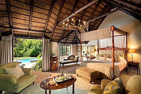 This intimate property is located within the Garden Route, 6.2 mi from Plettenberg Bay and 15 mi from Knysna. It offers elegant, thatched-roofed suites and non-thatched rooms and free WiFi is available throughout. Each individually decorated, air-conditioned suite and room at Hunter's Country House features tea/coffee facilities, a mini-bar and certain suites feature a fireplace. Some also have their own private terrace with a pool and garden. Guests can enjoy a glass of wine around the outdoor boma with couches and a fireplace. Breakfast is served in the conservatory, while light lunches and dinners are available by reservation in the dining room or outdoors on the lawn. A large, outdoor swimming pool is on site, along with a childrens play area. Hunter's Country House also has a shared library with a fireplace. Area activities include golfing, horse riding, boat trips, nature walks and swimming with seals. The Tenikwa Wild Cat Sanctuary, Monkeyland and Birds of Eden are all within 30 minutes’ drive.
