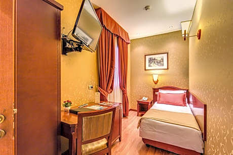 Just 984 feet from Roma Termini Train Station, Hotel Impero features a furnished terrace overlooking Rome’s rooftops and the nearby Opera Theater. The hotel is just a 15-minute walk from the Coliseum and the Roman Forum. The famous shopping street Via Nazionale and Repubblica Metro Station are 820 feet away. Air-conditioned rooms are en suite and feature wooden floors, a mini-bar and satellite TV. Some rooms have a private balcony. A varied buffet breakfast is served daily, and includes fresh fruit, cold cuts and homemade produce. The hotel also features a meeting room, and staff are available 24 hours a day. They can recommend restaurants and wine bars nearby and book tickets for museums. License Number(s): 058091-ALB-00760, IT