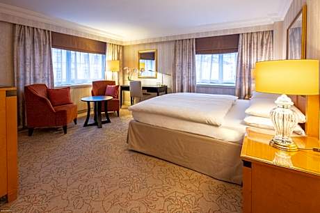 Located in the heart of Vienna facing the Stadtpark, the InterContinental Wien is close to all the city's sights and only a few steps away from the Stadtpark Underground Station. All rooms at the InterContinental Vienna feature state-of-the-art technology such as flat screen TVs, high-speed internet access, and digital TV. Rooms for disabled guests are available on request. Some rooms feature free access to the InterContinental Club Lounge on the 12th floor. Guests here can enjoy breakfast, hot and cold snacks throughout the day and a happy hour in the afternoon. A business center and a meeting room with free WiFi are also available for them free of charge. Coffee, tea, Viennese pastries and a variety of international and local dishes can be enjoyed throughout the day at Café Vienna. In the evenings, food and drinks including a wide range of whiskys and cocktails are served at the Intermezzo Bar. The state-of-the-art fitness center is available around the clock. It features a sauna, a steam bath and sun beds, and massages can be booked upon request. Other features of the hotel include an underground car park, a 24-hour business center and room service available from 6:30 to 23:00.