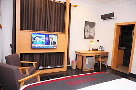 Located in Ikeja, within 2.7 miles of Kalakuta Museum and 6.5 miles of National Stadium Lagos, Ivy Hotel Emerald has a bar. With free WiFi, this 4-star hotel offers room service and a 24-hour front desk. The hotel provides an outdoor swimming pool, fitness center, karaoke and a shared lounge. The hotel will provide guests with air-conditioned rooms with a desk, an electric tea pot, a fridge, a safety deposit box, a flat-screen TV and a private bathroom with a bidet. The breakfast offers buffet, continental or Full English/Irish options. At Ivy Hotel Emerald you'll find a restaurant serving African, Chinese and International cuisine. Vegetarian, dairy-free and halal options can also be requested. National Art Theatre is 8.3 miles from the accommodation, while Central Mosque of Lagos is 10 miles from the property. Murtala Muhammed International Airport is 4.3 miles away, and the property offers a paid airport shuttle service.