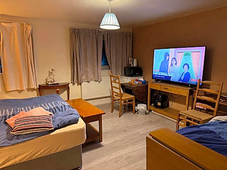 Guests will have a special experience as this family room provides a fireplace. Offering free toiletries, this family room includes a shared bathroom with a bath or a shower. The family room offers a tea and coffee maker, a safe deposit box, heating, a flat-screen TV, as well as garden views. The unit offers 3 beds.