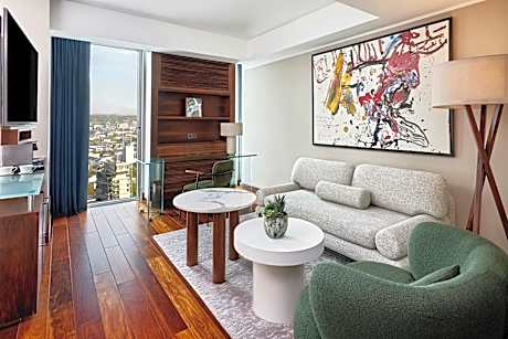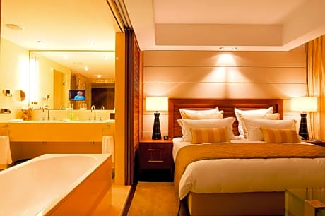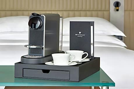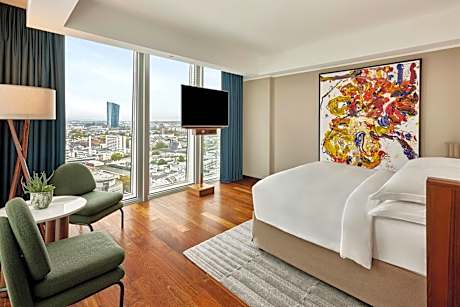 Dit elegante hotel verwelkomt u met een luxe interieur, moderne gerechten en holistische ontspanning. Het ligt midden in het hart van Frankfurt, op slechts een steenworp afstand van de grote winkelstraat Zeil. De ruime kamers en suites van het JW Marriott Hotel Frankfurt bieden een adembenemend uitzicht op de stad, de skyline van Frankfurt en de Taunusheuvels. Alle kamers zijn voorzien van een groot schilderij van de hedendaagse kunstenaar Hartwig Ebersbach, evenals een 42-inch tv, een Nespresso-apparaat en een efficiënt klimaatbeheersingssysteem. Gasten hebben onbeperkt toegang tot de Platinum Fitness First Health Club met binnenzwembad, gelegen in het naastgelegen gebouw. Hedendaagse gerechten om te delen worden geserveerd in het HERITAGE Frankfurt PopUp Restaurant. Metro- en S-Bahnstation Hauptwache ligt op slechts 100 meter van het Frankfurt JW Marriott Hotel. Het Römerplein ligt op 700 meter afstand.