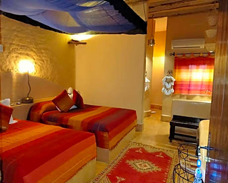 This hotel is located in the Erg Chebbi Desert in Merzouga, at the foot of the Golden Sand Dunes. It has a swimming pool, restaurant and terrace with a panoramic view of the desert. Free Wi-Fi and a mini-bar are included in every guest room. Each is equipped with air conditioning and has an private bathroom. The restaurant at Hotel Tombouctou serves international cuisine and Moroccan specialties and there is a clay oven. In the morning, guests can choose between a continental breakfast, buffet breakfast or American breakfast. Hotel Tombouctou offers a bar to relax in and gardens to take a walk in. It also has a spa with a hammam and sun beds on its sun terrace. This hotel is 2.5 mi from the N13 road and 75 mi from Errachidia Airport. It provides free parking and can organize excursions to the desert.