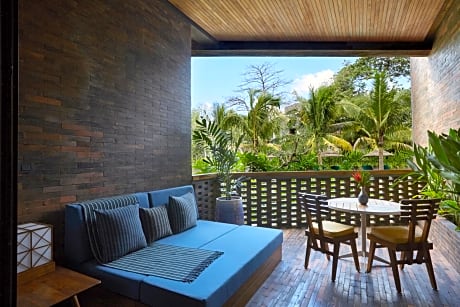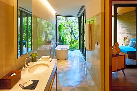 Featuring a private pool, this suite has a terrace with daybed and a dining table that overlooks the garden. The en suite bathroom comes with a bath, a shower, bathrobes and organic bath amenities.