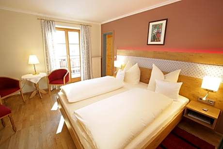 Set amid stunning landscape at the foot of the Wendelstein Mountain, in the heart of the Bavarian Alps, this traditional family-run hotel offers quiet, comfortable accommodations. Typically Bavarian in character and furnishings, most rooms at the Klosterhof zur Post have their own balcony from which you can admire the magical mountain scenery. Why not relax with a drink on the hotel terrace or in the beer garden after an active day of hiking or cycling in the countryside. A hearty, delicious breakfast buffet, with many organic products, specialties is set out every morning in the restaurant with specialties from our own monastery butchery, goat's cheese from our nearby monastery alp or farm cheese dairy, egg dishes of course from chickens from our own organic farm. In the evening, the chef prepares dishes from neighboring regions as well as delicious Bavarian specialties.