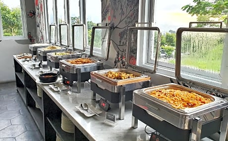 - Acrylscherm tussen gasten en personeel in de belangrijkste contactgebieden