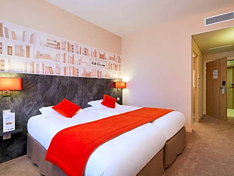 Kyriad Angers Ouest Beaucouzé is located in Beaucouzé, on the outskirts of Angers. Free WiFi access is available throughout. You can relax on the terrace with a drink from the bar. Each room features a flat-screen TV with satellite channels and air conditioning. Each room also comes with a bathroom with bath or shower and a hairdryer. The property offers free private parking on site and the Lac de Maine is 1.6 mi from away. Angers city center is 4.3 mi from the hotel.