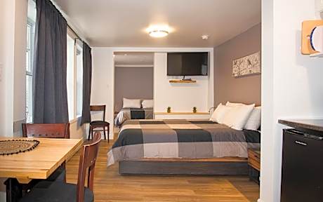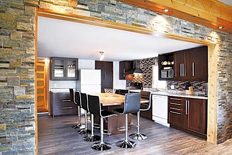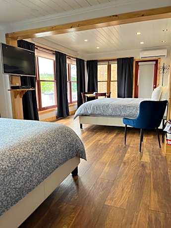 Located in Tadoussac, the La Galouine inn is located in the village center, at 5 minutes walk from Tadoussac Bay and the Saguenay-St. Lawrence Marine Park. It has bright rooms, air-conditioned, internet connection, the rooms are on 3 buildings, La Galouine main building, the Pavilion behind the main building and the Petit Hotel La Passe Pierre just outside the main building. A total of 25 rooms all different from each other. La Galouine offers a ticketing service for local attractions. You will also find a shop of homemade products from the Boreal Terroir. Local activities include whale watching, black bear safari and kayaking. Whale watching and safaris are 5 minutes walk from the hostel." This seasonal property is open from May to October.