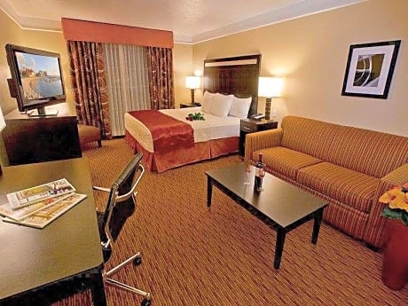La Quinta by Wyndham OKC North - Quail Springs ligt in Oklahoma City, op 16 km van Frontier City, en biedt accommodatie met een fitnesscentrum, gratis privéparkeergelegenheid en een gemeenschappelijke lounge. Dit 3-sterrenhotel biedt gratis WiFi, een 24-uursreceptie en een businesscentrum. Het hotel beschikt over een binnenzwembad en een bagageopslag. De accommodaties zijn uitgerust met airconditioning, een flatscreen-tv met kabelzenders, een koelkast, een koffiezetapparaat, een douche, gratis toiletartikelen en een bureau. Alle kamers hebben een eigen badkamer met een haardroger en sommige bieden uitzicht op de stad. Alle kamers van het hotel zijn voorzien van een zithoek. La Quinta by Wyndham OKC North - Quail Springs biedt een buffet of een Amerikaans ontbijt. End of the Trail ligt op 16 km van de accommodatie en de dierentuin van Oklahoma City ligt op 19 km afstand. De luchthaven Will Rogers World ligt op 26 km van de accommodatie.