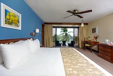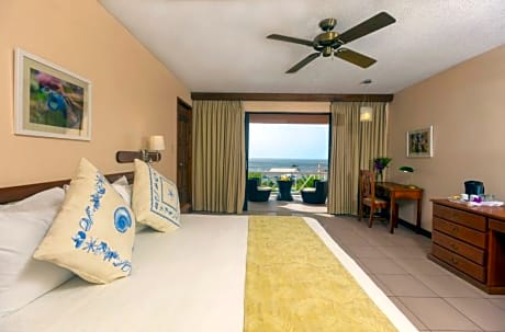 This hotel is set amidst two acres in a sweeping, picturesque palm-fringed bay. Scarborough, the capital of Tobago, is a 15-minute drive away, and the Crown Point international airport is 8 km away. The beach hotel is part of an all-inclusive complex with a terrace and a garden, and caters to adults seeking to relax and unwind. The hotel features one inclusive spa treatment per person per day (excluding arrival and departure days), and a variety of leisure activities to enhance the relaxing experience. The hotel comprises 85 rooms and suites as well as a lobby with a safe, a bar and a restaurant. Parking facilities are offered to those arriving by car. There are 27 deluxe rooms with a view over the garden, 45 deluxe rooms with a sea view, 9 deluxe rooms with a private hot tub in the garden, and 4 suites with one bedroom. All guest rooms are tastefully decorated with an en suite bathroom, a hairdryer, classic furnishing specially designed for the hotel, a king-size bed and Italian porcelain tiles. All rooms also feature individually adjustable air conditioning, a balcony or courtyard with a breathtaking view onto the bay, a ceiling fan, a tea/coffee maker, a fire alarm, a room safe, an iron and ironing board, an international direct dial telephone and satellite TV. Most of the rooms are reserved for non-smoking guests. The suites contain 2 bathrooms, one of which features a hot tub (for a maximum of 2 adults). Guests will find a large pool with a poolside bar, a cascading waterfall and a hot tub. Sun loungers and parasols are laid out ready for use. Guests have the choice of a variety of sporting activities - the complex includes 2 tennis courts, a gym, aerobics and beach volleyball. 2 squash courts and the nearby 18-hole Championship golf course are also available to guests. Water sports options are available and there is a varied entertainment programme for children. eals are all-inclusive.