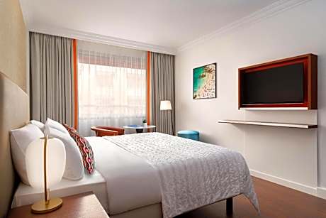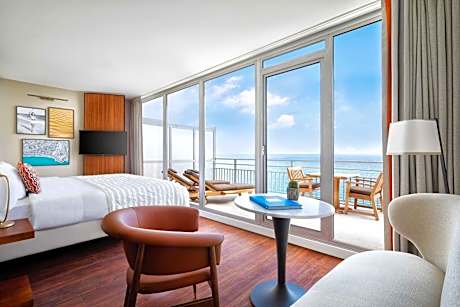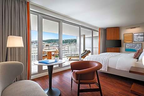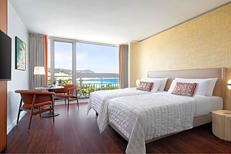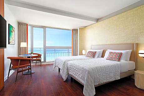 Right on the Promenade des Anglais, this hotel faces the Mediterranean Sea. It is a few steps from the Old Town and offers a panoramic rooftop terrace and an outdoor swimming pool. The hotel was renovated in 2020. The modern guest rooms at Le Meridien Nice have views of the sea, the Albert 1st Gardens, or the hotel patio. Each is air conditioned and includes free WiFi access, a mini-bar and satellite TV, and most also feature a balcony. From the hotel's restaurant on the rooftop terrace, guests will enjoy panoramic sea views over the Baie des Anges and the Mediterranean Sea. Breakfast is served every morning at the Riviera Space, which offers sea views. Meals can be enjoyed on the terrace, weather permitting. The hotel also has a fitness center. Nice-Côte d'Azur Airport is 5 mi away, while Nice Train Station is just 0.6 mi away. Public parking with direct access is available for a fee.