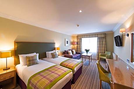 This fine country house hotel rests in 6 acres of beautiful landscaped gardens, only a few minutes' drive from Perth. There is free on-site car parking and free Wi-Fi. After exploring the castles and ruins of Perthshire, guests can enjoy a fine whiskey in the homely, Scottish bar or dine at the Huntingtower's spacious award-winning restaurant. There is also an outside seating area for warmer months. Each bedroom is unique; some offer a modern feel while others have bright colors and a more traditional decor. All rooms include tea and coffee making facilities and a bathroom with free toiletries. The Hermitage, which is a 30-minute drive away, has wonderful, easy walks through woodland, leading to ancient caves and a stunning waterfall. Activities like kayaking, 4x4 off road driving and golfing are also available. Perth rail and bus stations are 3 miles from the hotel.