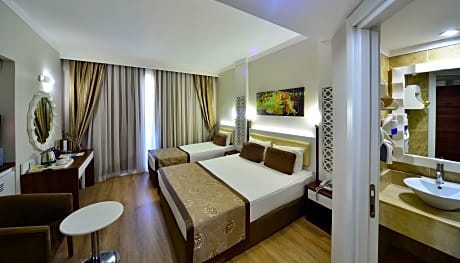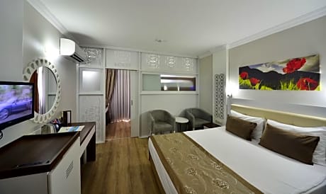 Nestled amidst the serene natural beauty surrounding Lake Titreyengöl, this popular hotel is just a short 5-minute stroll from a picturesque sand-and-pebble beach. Guests can enjoy a variety of sports facilities, including a refreshing pool with slides, and unwind in the tranquil spa area. The hotel's 239 rooms feature laminate flooring and convenient amenities. A vibrant entertainment program offers 18 different activities, 6 days a week, and a lively disco operates during summer evenings. The center of Manavgat, with its diverse shops and restaurants, is only 5 km away, while Antalya International Airport is 70 km from the hotel.