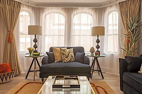 Mayfair House provides a mix of classic and contemporary apartments in the heart of London's prestigious Mayfair. Situated just 320 yards from the famous Park Lane, the property includes private parking and free Wi-Fi. Each apartment at Mayfair House, both classic and contemporary, provides guests with a large lounge, including spacious sitting and an LCD flat-screen TV. The kitchens are fully equipped with modern appliances, including a microwave and a fridge. Continental breakfast is available for an extra fee, and can be delivered to the apartments. Green Park Tube Station (subway) is just a 6-minute walk away and provides 1-stop journeys to Oxford Street, Piccadilly Circus and Victoria. The south east corner of Hyde Park can also be reached in just 6 minutes by foot. The London Palladium is less than a mile away.