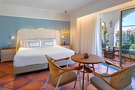This bright spacious room features a furnished balcony overlooking either an interior courtyard, the hotel gardens or the mountains. It is equipped with satellite TV, a safe, work desk and a mini-bar.