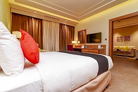 Mena Hotel Tabuk in Tabuk has 3-star accommodations with a fitness center, a shared lounge and a restaurant. The property has room service, a 24-hour front desk and currency exchange for guests. All rooms come with air conditioning, a flat-screen TV with cable channels, a fridge, a electric tea pot, a shower, free toiletries and a closet. Rooms are complete with a private bathroom equipped with a hairdryer, while some accommodations at the hotel also feature a seating area. Guests at Mena Hotel Tabuk can enjoy a buffet or a continental breakfast. Tabuk Regional Airport is 1.9 miles from the property.