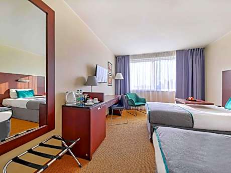 Mercure Warszawa Airport is conveniently located 1.9 mi from the entrance to Warsaw Chopin Airport’s terminal. It offers spacious air-conditioned rooms. Free WiFi is available in the entire hotel. Mercure Warszawa Airport's rooms have modern furniture, which includes a work desk. Each also has a flat-screen TV and a private bathroom with a shower. A safety deposit box is included in each room. Mercure Airport has a 24-hour front desk, which can organize a taxi to the airport. A breakfast buffet is available in the mornings. Later in the day the restaurant serves lunches and dinners. Warsaw’s center is 3.5 mi from the hotel, and Blue City Shopping center is 2.1 mi from the Mercure Airport. The hotel has easy access from main roads, such as E67 (Katowice) and E77 (Kraków). It is 0.8 mi to Szczęśliwice Park with an all-year ski slope and Galeria Mokotów Shopping Center is 2.5 mi. Surroundings feature a Racing Center carting track, Arco Bowling alley, a swimming pool and Modo Boutique Shopping Center.