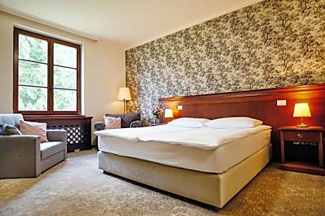 Surrounded by an 18-hole golf course, Mokrice Castle Estate is housed within a medieval castle set on a hill overlooking the green countryside. A2 Motorway connecting Ljubljana and Zagreb is only 1.2 mi away. The historic ambiance is decorated with refined period and period-style furniture. It includes an elegant à-la-carte castle restaurant which serves Slovenian classics with a modern twist and an ancient wine cellar. Special castle rooms are available to celebrate weddings. Mokrice’s rooms are elegantly decorated and include a private bathroom with marble-top sinks. Amenities include satellite TV, a mini-bar and a working desk. Guests staying at Mokrice Castle gain the access and special benefits at Terme Čatež Spa Resort, which is only 6.2 mi away. Free Wi-Fi is available in hotel’s public areas. Zagreb can be reached within a 30-minutes car drive. Ljubljana is 68 mi away. Free on site parking is provided.