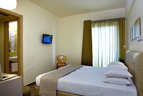 The economy double room has a large window and no balcony. Features high quality mattresses, mini refrigerator, hairdryer, LCD satellite TV in each room and free Wi-Fi. A DVD player is available on request.