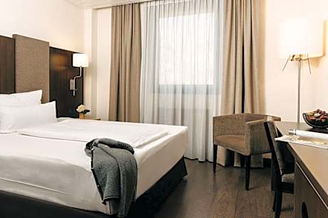 Peacefully located beside a forest in southern Fürth, this hotel offers renovated spacious rooms, a SPA area and plenty of free parking spaces. Enjoy contemporary furnishings and modern facilities at the 4-star Hotel Forsthaus Nürnberg Fürth. All rooms feature a large working desk, Rituals amenities, big showers and flat screen TV. The restaurant maximilian´s offers traditional franconian, international and vegetarian cuisine between 18:00 and 21:30. Try a cocktail at the hotel bar, open until 00:00, or enjoy a refreshing drink in the hotel's beer garden including playground during the summer (different opening hours). Keep fit in the hotel's gym, relax in the sauna and steam room, or swim a few laps of the hotel pool. Right outside the Hotel Forsthaus Nürnberg Fürth, you will find quiet paths and mountain biking routes which lead you through the forest. The center of Fürth is just a 10-minute drive away, while Nuremberg can be reached in 25 minutes. Young children will enjoy a trip to the PlayMobil Funpark (theme park), which is a 15-minute drive away.