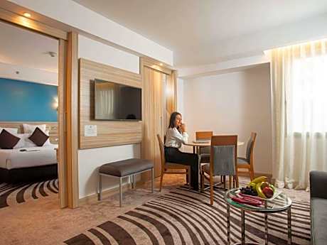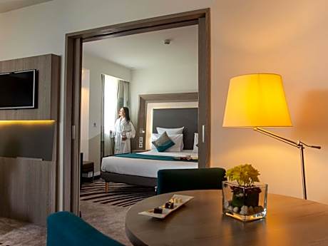 Novotel Cairo Airport offers 2 outdoor pools in the landscaped garden, free Wi-Fi and free airport shuttle. It is a 10-minute drive from the International Convention and Exhibition Center. This 4-star hotel provides air-conditioned guest rooms with satellite TV and a tea/coffee maker. Each has a private bathroom with a hairdryer. Guests can enjoy a workout at the on-site fitness center or a game of tennis on the court nearby. Novotel Cairo Airport also offers a business center, a 24-hour front desk and car rental. The Novotel Cairo’s 5 restaurants serve international and Mediterranean cuisine and 2 bars. Guests can enjoy live music with cold drinks at Le Rendez-vous. Novotel Cairo Airport is a 20-minute drive from the center of Cairo. A free airport shuttle is available and can be arranged by the hotel.