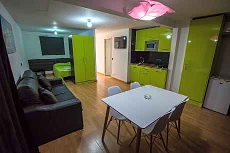 APARTAMENT STANDARD 2 PAX is 409 square feet and includes 2 single beds 80-130 width plus a sofa bed.