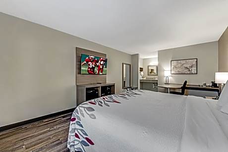 Featuring barbecue facilities, Red Roof Inn & Suites Wilkesboro is located in Wilkesboro in the North Carolina region, 26 miles from Stone Mountain State Park. This 2-star hotel offers a 24-hour front desk and free WiFi. At the hotel, rooms are equipped with a desk. Complete with a private bathroom equipped with a shower and free toiletries, the rooms at Red Roof Inn & Suites Wilkesboro have a flat-screen TV and air conditioning, and some rooms have a seating area. Guest rooms will provide guests with a fridge. Piedmont Triad Airport is 73 miles from the property.