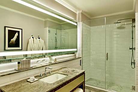 Famed bars, an awe-inspiring crystal chandelier restaurant, a fitness area and a glass dome indoor pool are featured at this landmark Financial District Palace. San Francisco’s vibrant Union Square is 5 minutes’ walk from Palace Hotel. Leather tufted headboards, 11-foot ceilings, bedside lighting, high thread count linens and pillow-top bedding set the stage for a luxurious night’s sleep in each room at the Palace Hotel, a Luxury Collection Hotel, San Francisco. High-end luggage inspired desk, tables and the bathroom vanity transport guests to the Palace origins with modern finishes. A 48-inch flat-screen satellite and streaming enabled TV, marble bath, rain shower and back-lit bathroom mirror completes the design. Inspired by west-coast impressionism, layered deep plum, midnight blue and shades of gray textiles create a rich coastal atmosphere. Restored architectural elements like a solid oak door from 1909 and brass monogrammed door knobs are featured. Custom sofas in a separate seating area and Market Street views are featured in select suites. Austrian crystal chandeliers hang from a light-filled glass rotunda surrounding The Garden Court restaurant. Breakfast, lunch and signature tea is featured during the day. Savory bites, handcrafted cocktails, curated wines and decadent desserts are served in the evening at the GC Lounge. Guests can enjoy innovative cocktails, craft beers, bold wines and shareable artisan cuisine at the Pied Piper, home of the Maxfield Parrish mural The Pied Piper of Hamelin, which was commissioned as gift to San Francisco to honor the hotel’s reopening in 1909. Boasting sexy, contemporary décor, the Pied Piper is a San Francisco legend and the perfect place for an intimate individual dining experience or a social celebration. Under a glass dome with city views, an indoor pool surrounded by chaise lounges and spas is featured. Tucked away on a high floor, this key card access oasis also features spa services and a 24-hour fitness center that overlooks the pool area through floor to ceiling windows. Marble baths and spa showers are featured in the changing rooms. Palace Hotel, a Luxury Collection Hotel, San Francisco is 20 minutes’ cable car ride from shopping and dining at Fisherman’s Wharf. Offering a 24-hour concierge service, the concierge can connect guests’ to restaurants, designer boutiques, cable cars rides, the Embarcadero, Ferry Building, Chinatown, Oracle Park, cultural museums and theaters.