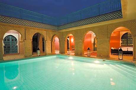 Hotel Berbere in Marrakech offers wonderful views of the nearby Atlas Mountains. It has 2 outdoor swimming pools and the wellness center features a steam bath and solarium. All of the rooms at hotel Berbere have satellite TV, bath or shower, air conditioning and a private balcony overlooking the garden and pool. Traditional and local specialties are served in the restaurant, along with vegetarian and diabetic options. Guests are welcome to choose their own vegetables from the hotel's organic garden. Massages and beauty treatments are also available upon request. Free Wi-Fi access is available in the public areas and in some of the rooms. The hotel is 4.3 miles away from the Marrakech souq and central Marrakech and the property features an open kitchen.