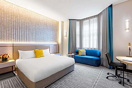 Tucked behind a storied sandstone facade—once home to Sydney’s Fairfax newspaper empire and the venerable Bank of New South Wales—Paradox Sydney pens a fresh chapter on a timeless page. Vintage grandeur and contemporary luxury collide, crafting a stay that is sophisticated, spirited, and ever so slightly unexpected. Just moments from the Opera House’s striking silhouette, Circular Quay’s bustling waterfront, and Martin Place’s upscale energy, Paradox Sydney positions you exactly where you want to be—and where you least expect. Slip effortlessly from business talks to boutique explorations, unwind at secret laneway bars, and lose track of time at exclusive culinary treasures. At Paradox Sydney, luxury is the experiences stitched into every moment, from check-in to check-out. It is the impeccable service that always stays one step ahead, the dining that delights at any hour, and the spaces that adapt to every occasion. Savor Sydney’s eclectic flavors from the break of dawn to the final starlight, or sip something special in one of our stylish bars. Our event spaces are well equipped—smart, adaptable, and primed to bring your grand plans or fleeting fancies to life. As the day softens, retreat to your room where comfort is instinctive, and every thoughtful touch feels like it was left just for you. Stay strong in the hotel 24-hour wellness center, where high-performance equipment keeps you on top of your game no matter the hour. Drift into tranquility at our indoor pool, let the hot tub work its soothing wonders, or step into the steam room and watch your worries evaporate. The expert therapists at Tanya Spa are on hand to smooth out the tension with every treatment. Paradox Sydney is all about great experiences—with a lighter footprint. From cutting waste to conserving energy, we make it easy for you to enjoy your stay while being kind to the planet. Relax, unwind, and feel good knowing sustainability is part of your journey. Every stay at Paradox Sydney is a personal journey, and every moment is yours to make.
