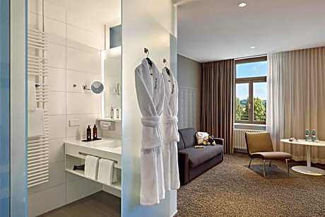 Dorint Parkhotel Jordanbad features a shared lounge, terrace, a restaurant and bar in Biberach an der Riß. Among the facilities at this property are room service and a 24-hour front desk, along with free WiFi throughout the property. The property has a year-round outdoor pool, indoor pool, fitness center and garden. The breakfast offers buffet, vegetarian or vegan options. The hotel offers a range of wellness facilities including a sauna and a hammam. Guests at Dorint Parkhotel Jordanbad will be able to enjoy activities in and around Biberach an der Riß, like hiking and cycling. Ulm Central Station is 27 miles from the accommodation, while Ulm Cathedral is 28 miles from the property. Memmingen Airport is 24 miles away.