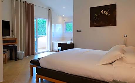 Private Hôtel is an adults only boutique hotel set on the hillside of Porto-Vecchio, just 3.1 mi from Palombaggia Beach and 5 mi from Santa Giulia Beach. It offers an outdoor swimming pool and free access to its on-site sauna, hammam and hot tub. A private balcony or terrace with views of the garden is included in all of the contemporary rooms at Private Hôtel. Each one has a flat-screen TV with a DVD player, while some also feature a spa bath. Free Wi-Fi access is available and massages can be arranged at the reception with an extra cost. Free private parking is also possible on site and Figari Airport is 19 mi away.