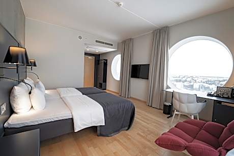 This modern hotel is next to Friends Arena and Mall of Scandinavia in Arenastaden District of Solna. Stockholm city center is an 8-minute train ride away. It offers a gym, 2 saunas and a 25th-floor restaurant. WiFi is free. Flat-screen TVs,work desk and designer décor are standard at Quality Hotel Strawberry Arena. Most rooms feature unique, circular windows and all rooms have a private bathroom with a shower or bathtub. The 25th-floor restaurant offers an à la carte menu, while the lobby restaurant serves lighter dishes. The daily breakfast buffet includes ecological options. Solna Train Station is 1969 feet from Quality Friends Hotel. Stockholm Arlanda Airport is a 30-minute drive away.