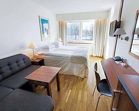 Located along the Viskan River, this hotel is a 5-minute walk from Borås Central Station. Quality Hotel Grand offers a quiet get away with a central location. All rooms at Quality Hotel Grand, Borås have cable TV, seating area and desk. All have views over Borås’s city center or Stadsparken, the city’s park. Some rooms feature a mini-bar. Free WiFi is available. Gym is open everyday from 6:00 to 22:00. Bar with barmenu is open from Monday to Saturday. A selection of snacks, soft drinks and light meals can be purchased around the clock in the lobby. The popular Borås Zoo is 1.6 mi from Quality Hotel Grand, Borås, while Navet Science Center is only 3 minutes drive away.
