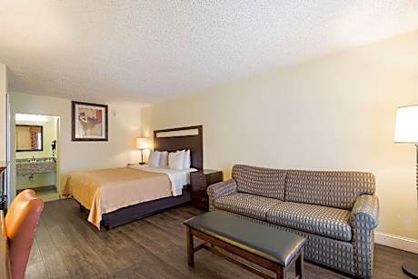 The Quality Inn & Suites hotel is located in downtown Statesboro, just one mile from Georgia Southern University. This Statesboro, GA hotel is minutes from the Allen E. Paulson Stadium, Georgia Southern Botanical Garden, the Georgia Southern University Museum, Hanner Fieldhouse multipurpose facility and Ogeechee Technical College. Statesboro is a unique college town with a wide variety of shopping opportunities, restaurants, nightclubs and coffee houses. Several local bars feature live music and entertainment. Be sure to visit Manny's Neighborhood Grille, located off the main lobby of the hotel. Guests can watch their favorite sport live on 20 different televisions while enjoying Greek, Italian and American cuisine. Hotel amenities and features include free deluxe continental breakfast, served daily from 6 a.m. until 9:30 a.m., free wireless high-speed Internet access in all rooms, free newspaper, free coffee and free local calls. This pet-friendly hotel has a seasonal outdoor pool and a sundeck for guest enjoyment. Be sure to take advantage of the exercise room. This Statesboro, GA hotel provides business travelers with conveniences like a public computer with Internet access and access to copy and fax services. The banquet and meeting facilities accommodate up to 498 people for most events and business functions. Laundry facilities and a concierge desk are located on the premises for added guest convenience. All guest rooms at this Georgia hotel come equipped with refrigerators, coffee makers, desks, curved shower rods, down pillows, hair dryers and cable television. In addition, some rooms feature plasma televisions and microwaves. Ask about rooms with whirlpool bathtubs. Non-smoking rooms can be requested.