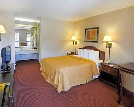 The Quality Inn hotel is located just three miles from the North Carolina Granite Quarry. This hotel is close to many Yadkin Valley vineyards, including Black Wolf Vineyards, Shelton Vineyards, Elk Run Vineyards and Old North State Winery. The Blue Ridge Parkway is just 14 miles away. Mount Airy is the birthplace of Andy Griffith. Visitors are invited to step back to a simpler time. A stroll down Main Street in the Friendly City will remind people of the town of Mayberry. Fans of The Andy Griffith Show can visit Floyd's City Barber Shop, Old Mayberry Jail, Snappy Lunch and Andy's childhood home. At nearby Hanging Rock State Park, visitors will find boating, fishing, swimming, hiking, rock climbing and picnic areas. Golf courses and tennis courts are also close by. A variety of restaurants, cocktail lounges and specialty shops are located in the surrounding area. This hotel offers full-service amenities and features, including a free continental breakfast and free coffee and cappuccino. Guests will enjoy relaxing in the seasonal outdoor pool. Business travelers will appreciate modern conveniences like free wireless high-speed Internet access in all rooms, data port telephones, voice mail and access to fax services. An on-site meeting room can accommodate up to 30 people. All spacious guest rooms include hair dryers, irons, ironing boards, easy chairs with ottomans and cable television with free HBO. In addition to standard features, Executive King suites feature whirlpool bathtubs and large work desks. Nonsmoking rooms are available upon request. Pets are welcome with a small stay fee. Valet cleaning services are provided for guest convenience.