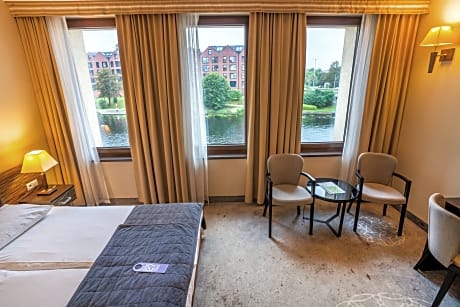 Qubus Gdańsk is a 4-star hotel offering a boat ride in the summer season and air-conditioned rooms with an LCD TV and free Wi-Fi. They overlook Motława River and the Old Town of Gdańsk. A varied buffet breakfast is served at the hotel’s elegant restaurant, which specializes in international and Polish seasonal cuisine. The Lobby Bar is a place to enjoy original cocktails and wines. All luxurious rooms at the Qubus are soundproofed and come with a working space and a safe. Each has a mini-bar and a modern bathroom with either bath or shower. Guests can relax in a fitness center with a sauna and a relaxation area. Front desk staff is available 24 hours a day and can arrange laundry and ironing services. Qubus Hotel Gdańsk is located a 5 minutes’ walk from the city’s beautiful Old Town. The Main Railway Station in Gdańsk is 0.9 miles away.