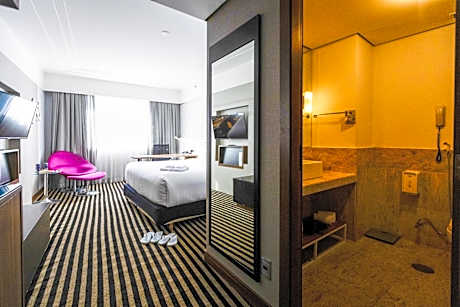 Located in Alphaville, with easy access to São Paulo through Castelo Branco Highway, Radisson Alphaville is 1.2 mi from both Iguatemi Alphaville Mall and Tamboré Shopping Mall and 3.1 mi from Barueri Municipal Theater. The hotel features an indoor heated pool and an equipped fitness center. Free WiFi is available throughout the property and private parking with valet service is possible on site at a surcharge. The hotel's contemporary rooms offer air conditioning,a safety deposit box, a flat-screen TV with cable channels and a mini-bar. Guests also benefit from a well-lit work space equipped with an ergonomic chair.The private bathroom includes a shower, free toiletries and hairdryer. Some rooms also include a Nespresso coffee machine. Guests can try local and international cuisines at Radisson Alphaville’s restaurant. The lobby serves warm beverages, light snacks and a variety of local and international beers. Guests can also enjoy the buffet breakfast served daily at the hotel,which includes a wide selection of fruits,tapioca,scrambled eggs, hot and cold beverages,cakes,breads and cold cuts. Other facilities at Radisson Alphaville include a sauna, a spa, laundry facilities, a shared lounge and meeting facilities. A front desk staff and concierge service are available to provide around the clock assistance to guests. Guests will find an array of renowned restaurants and cafes nearby. Albert Einstein Hospital is 2.2 mi from Radisson Alphaville,while Alphaville Tennis Club is 0.9 mi away. Congonhas Airport is 18 mi from Radisson Alphaville, while São Paulo/Guarulhos Airport is 28 mi from the hotel.