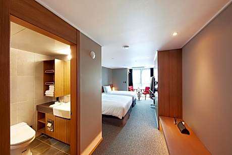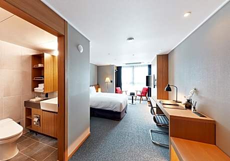 Ramada by Wyndham Gumi (Korea Quality) provides flawless service and all the necessary facilities for visitors. Stay connected with your associates, as complimentary Wi-Fi is available during your entire visit.The hotel offers taxi amenities to assist you in discovering your desired offerings in Gumi-si.When arriving by car, you'll be grateful for the on-site complimentary parking at hotel. The hotel offers reception amenities including express check-in or check-out, luggage storage and safety deposit boxes to ensure a comfortable stay for guests.Whether it's an extended stay or simply needing fresh attire, laundromat, dry cleaning service and laundry service provided by hotel ensures your cherished travel garments stay spotless and accessible.Your stay will be comfortable with the presence of room service and daily housekeeping as an in-room amenity for your relaxation and enjoyment. Need something at the last minute? The convenience stores has you covered, ensuring your requirements are met without any inconvenience.To ensure the well-being and convenience of all visitors, smoking is strictly prohibited throughout the entire hotel.In order to ensure the utmost level of relaxation, the guestrooms feature an inviting design and are equipped with all basic necessities, creating a delightful stay experience. To ensure a pleasant stay, a selection of rooms at hotel come furnished with blackout curtains and air conditioning, all designed with your ease in mind.Several chosen accommodations at Ramada by Wyndham Gumi (Korea Quality) have a separate living room incorporated into the room design.In select rooms, visitors can enjoy a touch of amusement with the availability of television and cable TV for their entertainment needs.Within specific rooms, a refrigerator, bottled water, instant coffee and instant tea is conveniently available for your use.Understanding the significance of bathroom facilities in enhancing visitor contentment, hotel offers a hair dryer, toiletries, bathrobes and towels within a few chosen chambers. Start your day stress-free at Ramada by Wyndham Gumi (Korea Quality) as breakfast is made available for you on the premises. How about kicking off each day of your getaway with a delicious cup of coffee? At the hotel, relish in the invigorating taste of a freshly brewed, excellent coffee. Various excellent meal offerings at hotel ensure that enticing and easily accessible options are constantly available.Upon your arrival, don't miss experiencing bar for enjoyable in-house evening entertainment. Throughout the day, engage in the entertaining activities available at Ramada by Wyndham Gumi (Korea Quality). Guests who enjoy maintaining their fitness regimen while on holiday can visit the fitness center provided by hotel.