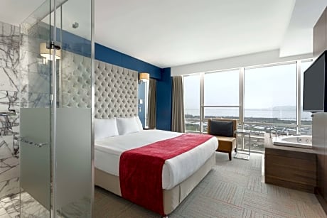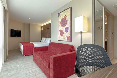 Great care is taken to ensure guests experience comfort through top-notch services and amenities.Remain linked during your visit by utilizing the complimentary internet access available.Prior to your check-in date, you can arrange airport transportation services, guaranteeing a seamless and efficient experience for both arrival and departure. Experience the wonders of İzmir with ease by utilizing the services provided at shuttle.The hotel offers complimentary parking for guests who arrive with their own mode of transport. Effortlessly plan your daily activities and travel requirements with concierge service, express check-in or check-out, luggage storage and safety deposit boxes provided by the front desk services.For extended visits or whenever required, the dry cleaning service and laundry service ensures your preferred travel garments remain clean and accessible.During leisurely days and evenings, in-room amenities such as room service and daily housekeeping enable you to maximize your stay in the room.For minor or impromptu requirements, the convenience stores can promptly cater to them without the necessity of stepping out from the hotel.The hotel is completely smoke-free.Crafted for coziness, every guestroom provides an array of features, guaranteeing a tranquil night's sleep while maintaining the level of comfort.For a more enjoyable stay, select rooms at hotel are equipped with linen service and air conditioning.At Ramada Encore by Wyndham Izmir, a selection of rooms can be found that showcase unique design elements such as a balcony or terrace. Expand your in-room entertainment choices with various amenities, such as television offered in certain accommodations.Rest assured that your hydration needs will be met, as some guestrooms are equipped with a coffee or tea maker and mini bar. Maintain your cleanliness and comfort using a hair dryer and toiletries available in select guest restrooms. Each morning at Ramada Encore by Wyndham Izmir, a scrumptious, homemade breakfast kick-starts the day.Begin your holiday mornings right with your essential cup of coffee, offered daily at the cafe on-site. During your visit, indulge in a range of delightful culinary choices at hotel to enhance your experience.Experience a fantastic evening effortlessly! Relish an entertaining night without venturing beyond the confines of the bar. Indulge in the numerous pursuits available at Ramada Encore by Wyndham Izmir. Treat and spoil yourself by taking a trip to sauna. Eliminate those holiday calories by stopping by hotel and making use of their well-equipped exercise amenities. License Number(s): 15232