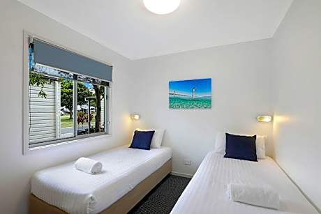 Reflections Forster Beach - Holiday Park offers beachfront accommodations with free WiFi and free on-site parking. Guests enjoy use of a children's playground, BBQ facilities, and a shared kitchen. Reflections Forster Beach - Holiday Park is 5 minutes’ walk from Forster Visitor Information Center and 5 minutes' drive from Tuncurry Rock Pool. It is 10 minutes’ drive from Booti Booti National Park and 20 minutes’ drive from The Big Buzz Fun Park. Accommodations options include self-contained cabins and modern villas. They offer a patio and a kitchenette with a microwave and a refrigerator. They feature a private bathroom and a TV with a DVD player.