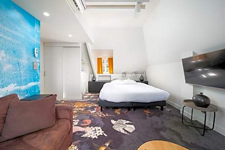 Offering a sea view, this double room features air conditioning and a seating area with sofa bed.