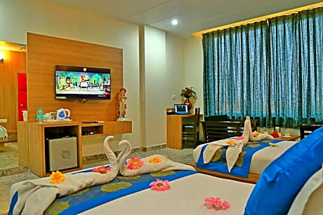 Great care is taken to ensure guests experience comfort through top-notch services and amenities. Remain linked during your visit by utilizing the complimentary internet access available.Prior to your check-in date, you can arrange airport transportation services, guaranteeing a seamless and efficient experience for both arrival and departure.Services offered by taxi, car hire and shuttle at the hotel ensure effortless exploration of Bharatpur.The hotel offers complimentary parking for guests who arrive with their own mode of transport.Effortlessly plan your daily activities and travel requirements with concierge service, express check-in or check-out, luggage storage and safety deposit boxes provided by the front desk services.Securing passes to the city's top attractions is simple with the hotel's ticket service and tours. During your stay at this fantastic hotel, experience comfort and warmth from the delightful on-site fireplace on those chilly days and nights. For extended visits or whenever required, the dry cleaning service and laundry service ensures your preferred travel garments remain clean and accessible. During leisurely days and evenings, in-room amenities such as room service and daily housekeeping enable you to maximize your stay in the room. The hotel is completely smoke-free.In limited designated zones, smoking is exclusively permitted. Crafted for coziness, every guestroom provides an array of features, guaranteeing a tranquil night's sleep while maintaining the level of comfort. For a more enjoyable stay, select rooms at hotel are equipped with linen service and air conditioning.At Rubystone Shiv Vilas Palace, a selection of rooms can be found that showcase unique design elements such as a separate living room.For certain chosen rooms, guests can enjoy in-room amusement like daily newspaper, television and cable TV as a part of their stay. Rest assured that your hydration needs will be met, as some guestrooms are equipped with a refrigerator, bottled water, a coffee or tea maker and mini bar.Maintain your cleanliness and comfort using toiletries and bathrobes available in select guest restrooms. Begin your day on a delightful note with a scrumptious complimentary breakfast, consistently served at Rubystone Shiv Vilas Palace. During your visit, indulge in a range of delightful culinary choices at hotel to enhance your experience. Indulge in the numerous pursuits available at Rubystone Shiv Vilas Palace.Begin your holiday perfectly by taking a plunge into the swimming pool. Eliminate those holiday calories by stopping by hotel and making use of their well-equipped exercise amenities.
